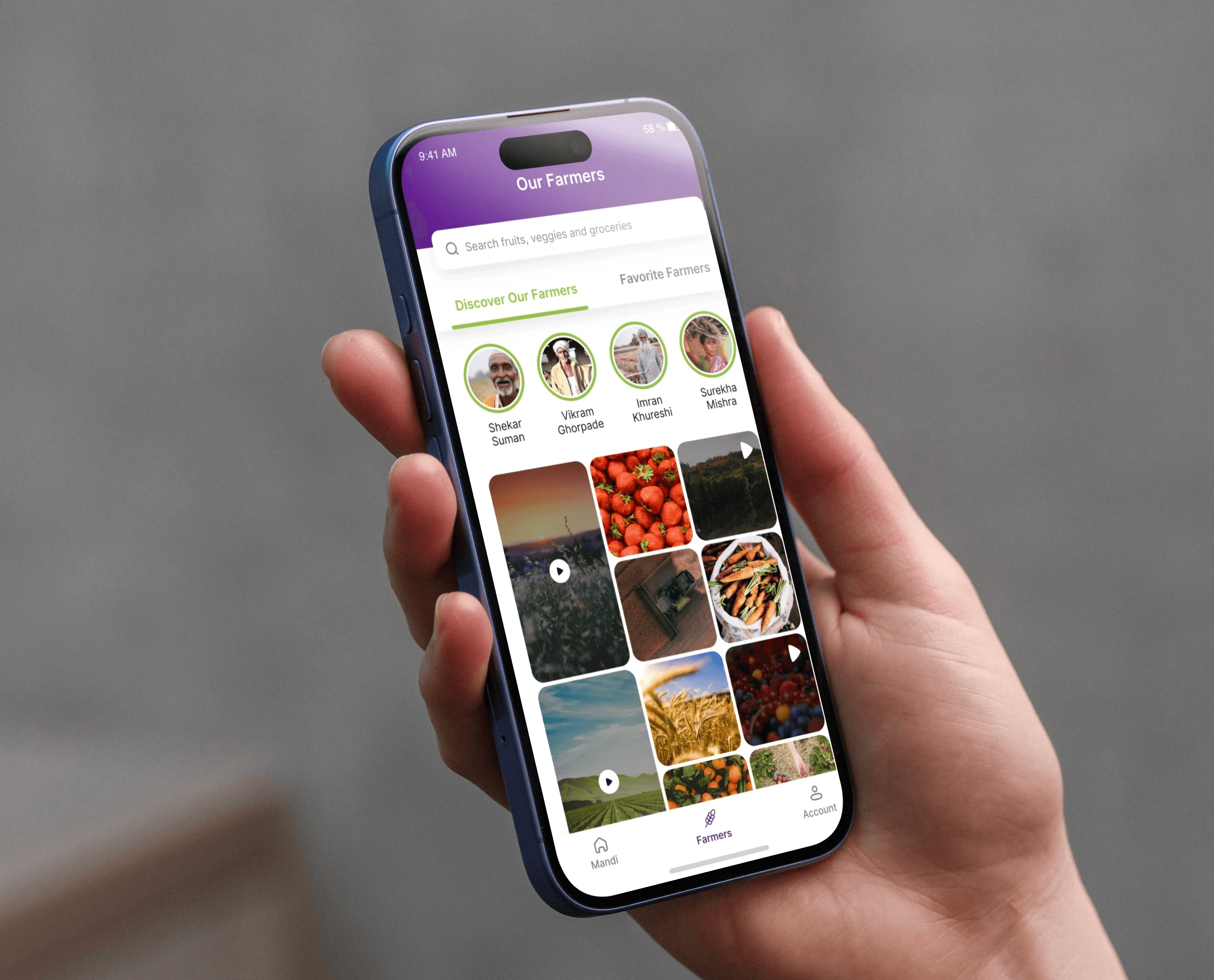 However, during early user interviews, we realized people were curious about where their food comes from and who grows it. This insight led us to explore ways to bring farmers closer to the digital experience.